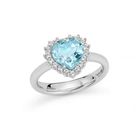 Anello in argento 925 con una Gemma del Cielo, Topazio naturale azzurro taglio a cuore 8 per 8 mm di ct 2,2 e 18 topazi naturali bianchi taglio rotondo 0,36 ct totali