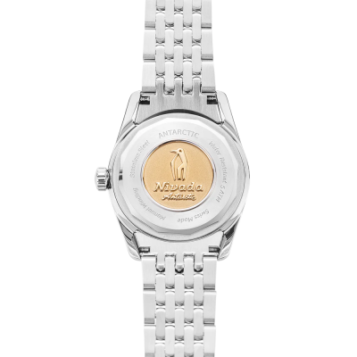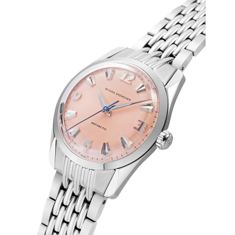 Orologio Nivada Grenchen Antarctic 35 mm. penguin quadrante salmone edizione limitata 100 pezzi al mondo, bracciale in acciaio chicchi di riso, movimento landeron 21 manuale, vetro zaffiro.