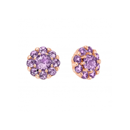 Miluna ERD2925 Orecchini in argento 925/1000 placcati oro rosa, linea Gemma del cielo, con due ametiste viola naturali taglio rotondo 5 millimetri e caratura complessiva di 0,84 e sedici ametiste viola naturali 2,5 millimetri di caratura 0,96 totale.