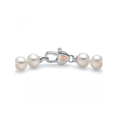Girocollo Miluna PCL6599 realizzato con chiusura in argento 925 a forma di cuore con cuoricino centrale in oro rosa 750/1000 e filo di perle vere del diametro di 4,5/5 millimetri di colore bianco.