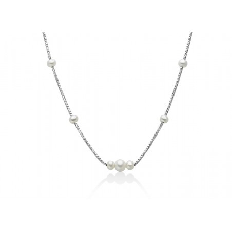 Miluna girocollo in argento 925/1000 con 6 perle vere Oriente bianche di dimensione 5-5,5 mm e 1 perla vera Oriente bianca di 7-7,5mm.