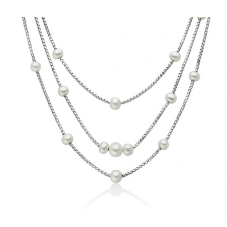 Miluna PCL6626 Girocollo in argento triplo filo con perle bianche
