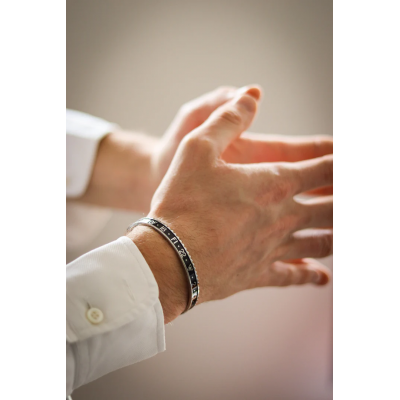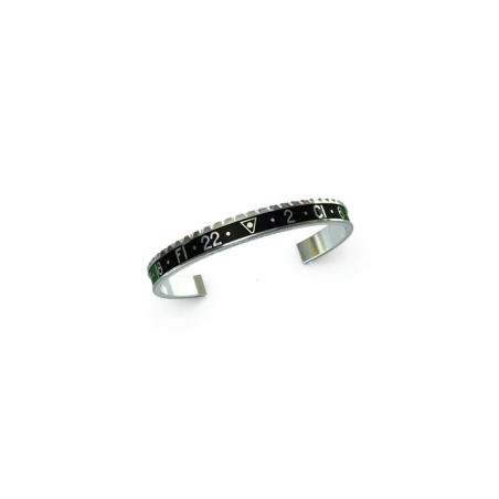 Bracciale speedometer official in acciaio marino a taglia unica regolabile direttamente sul polso, bracciale che riprende la ghiera dell'orologio GMT sprite verde e nera.