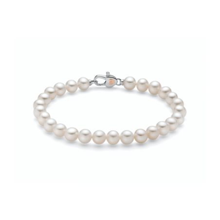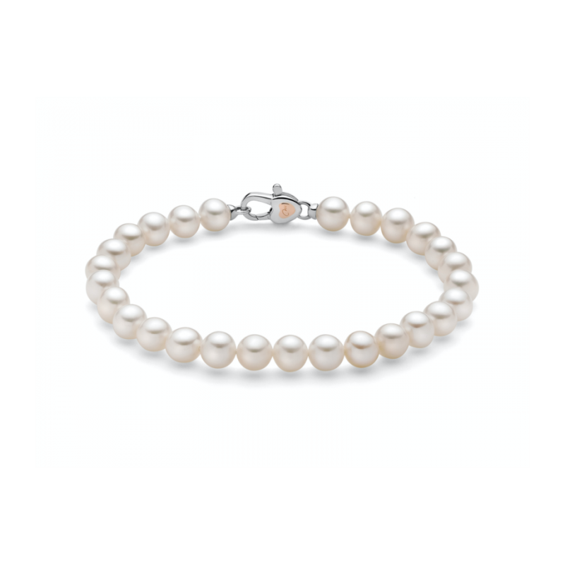 Miluna PBR3376 bracciale di perle color bianco misura 6-6,5 e chiusura in argento 925 impreziosita da un cuore in oro rosa 750/1000. Per i sui 18 anni, il diploma, la gara... Un dono pieno di luce e affetto