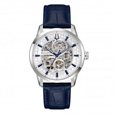 Orologio Bulova Sutton Skeleton con quadrante scheletrato silver e cinturino in pelle, movimento automatico con 40 ore di riserva di carica, vetro minerale.