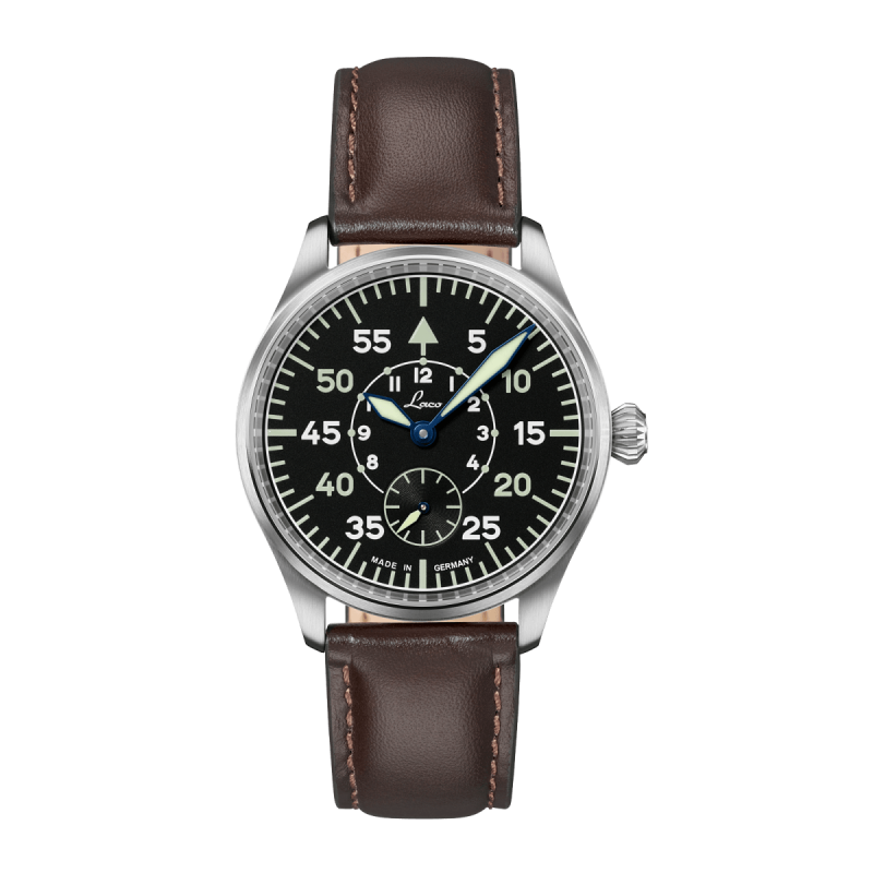 Laco Wurzburg orologio pilot a carica manuale con quadrante di tipo B e cassa da 39 mm. movimento Laco su base Sellita SW261 elaboré con secondina a ore 6.