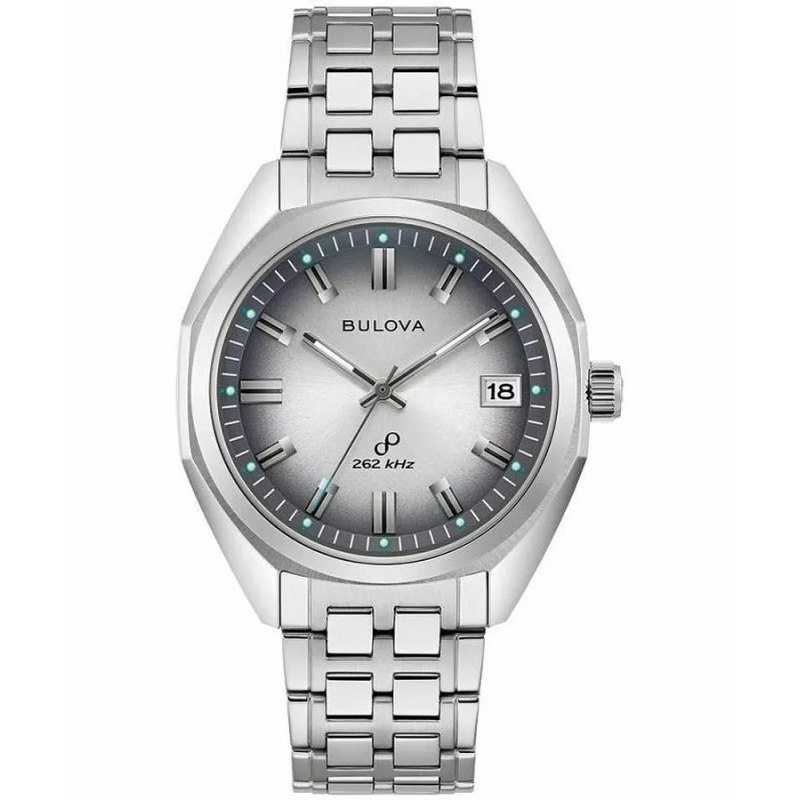 Orologio da uomo Bulova Jet star precisionist diametro 40 mm. vetro zaffiro, movimento al quarzo al alta frequenza, nuovo quadrante grigio degradè, bracciale in acciaio, resistente all'acqua 50 metri.