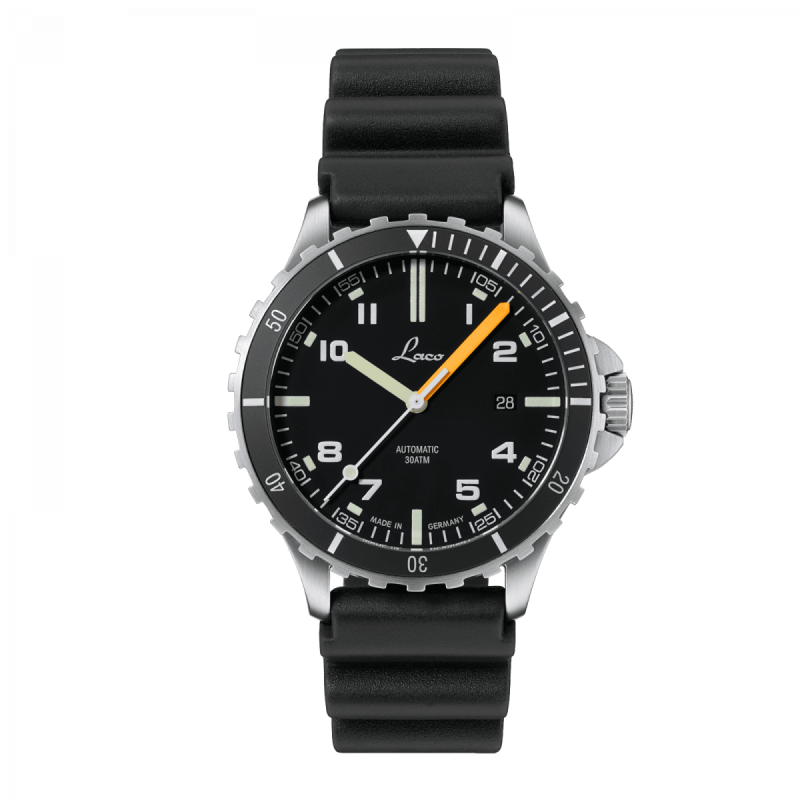 Orologio Laco Squad Himalaya 42 mm. automatico Laco 200 su base Sellita SW200, resistente all'acqua 30 ATM. vetro zaffiro con antiriflesso interno, cinturino in gomma.