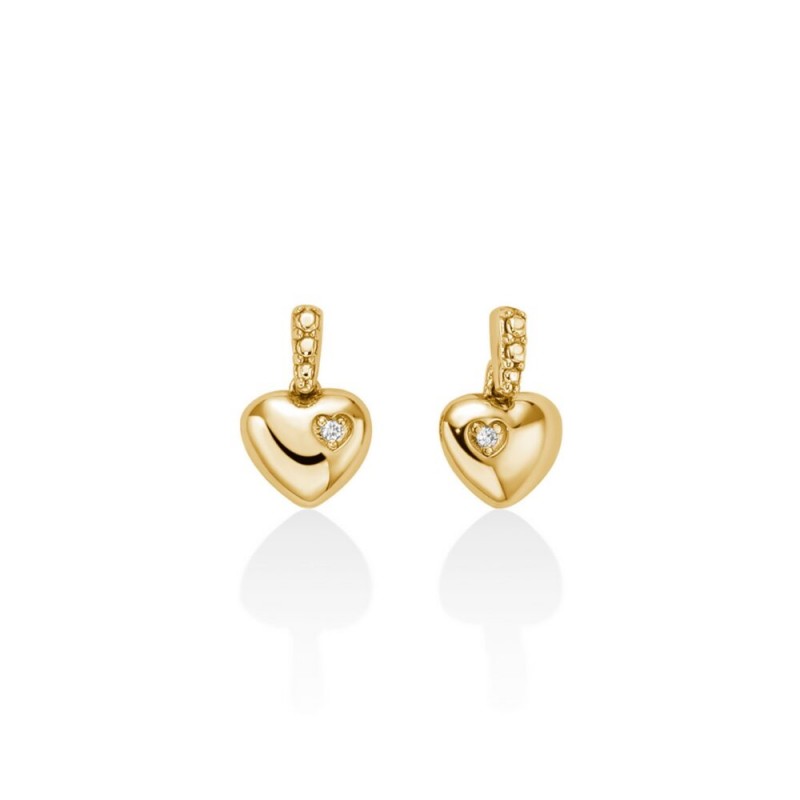 Orecchini Miluna ERD2804X cuoricini della collezione 375 realizzati in oro giallo ed impreziositi da 2 diamanti naturali di caratura complessiva di 0,66 colore G purezza SI.
