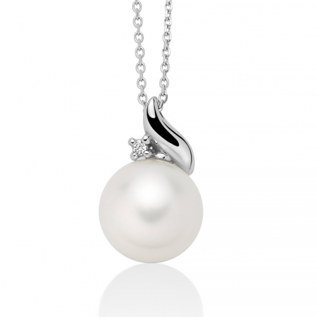 Girocollo Miluna PCL6556 realizzato in oro bianco 750/1000, monta un diamante naturale con caratura di 0,7 colore G purezza SI taglio brillante rotondo e una perla del diametro di 8/8,5 millimetri di colore bianco. Candore, luce ed eleganza.
