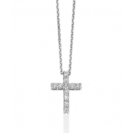 Girocollo Miluna CLD4264 realizzato in oro bianco con ciondolo a forma di croce impreziosito da 11 diamanti naturali taglio brillante rotondo di caratura 9,9 punti colore G purezza SI. La dimensione è pari a 7x10 mm.