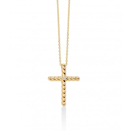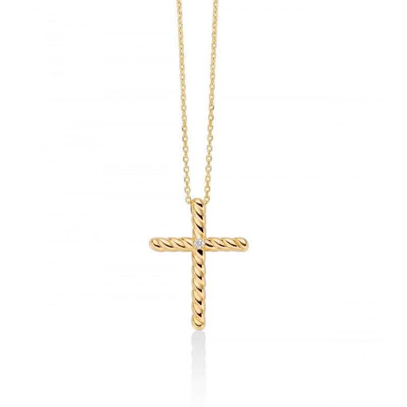 Miluna CLD4665X girocollo croce in oro giallo 375/1000 con diamante