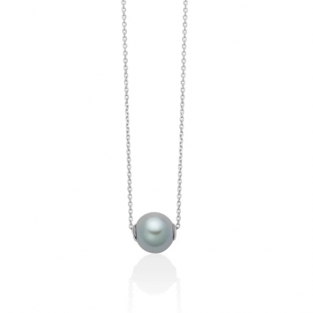 Girocollo Miluna realizzato in oro bianco 375/1000,con perla vera naturale color grigio misura 6,5-7