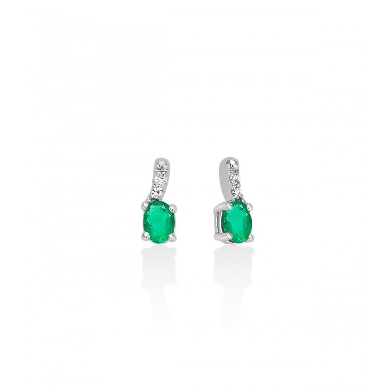Orecchini Miluna ERD2794X della collezione 375 realizzati in oro bianco impreziositi da 4 diamanti naturali per un totale di 1,62 punti colore G purezza SI e due smeraldi naturali taglio ovale di caratura complessiva 0,3.