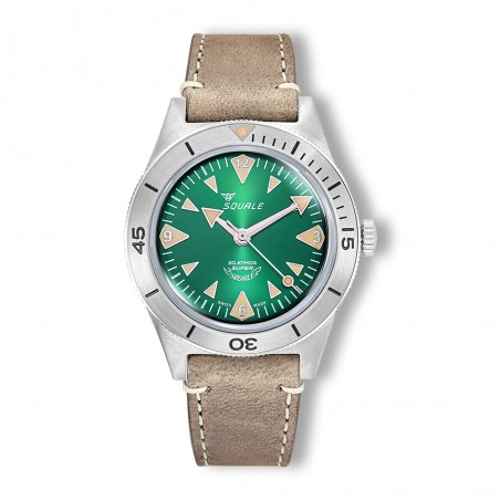 Orologio Super Squale verde smeraldo con cinturino in pelle perfetto stile vintage anni 60, movimento automatico Sellita SW200-1 elaborè, cassa diametro 38 mm. resistente all'acqua 200 metri.