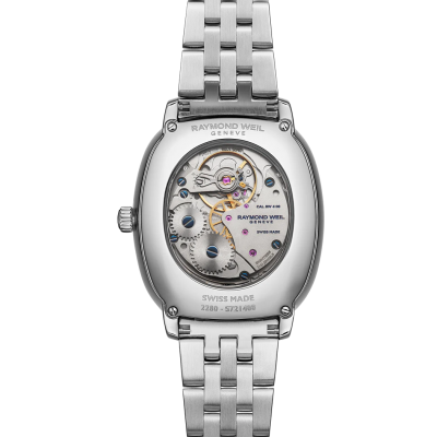 Raymond Weil orologio Toccata Heritage dalla forma ovale con quadrante blu sunray e bracciale in acciaio, movimento manuale meccanico calibro RW4100 con 45 ore di riserva di carica, meticolosa attenzione a tutti i dettagli, vetro zaffiro con trattamento antiriflesso, fondello con movimento a vista, Garanzia ufficiale 3 anni Raymond Weil. Dimensione cassa 33 per 38 mm. spessore 6,95 mm.