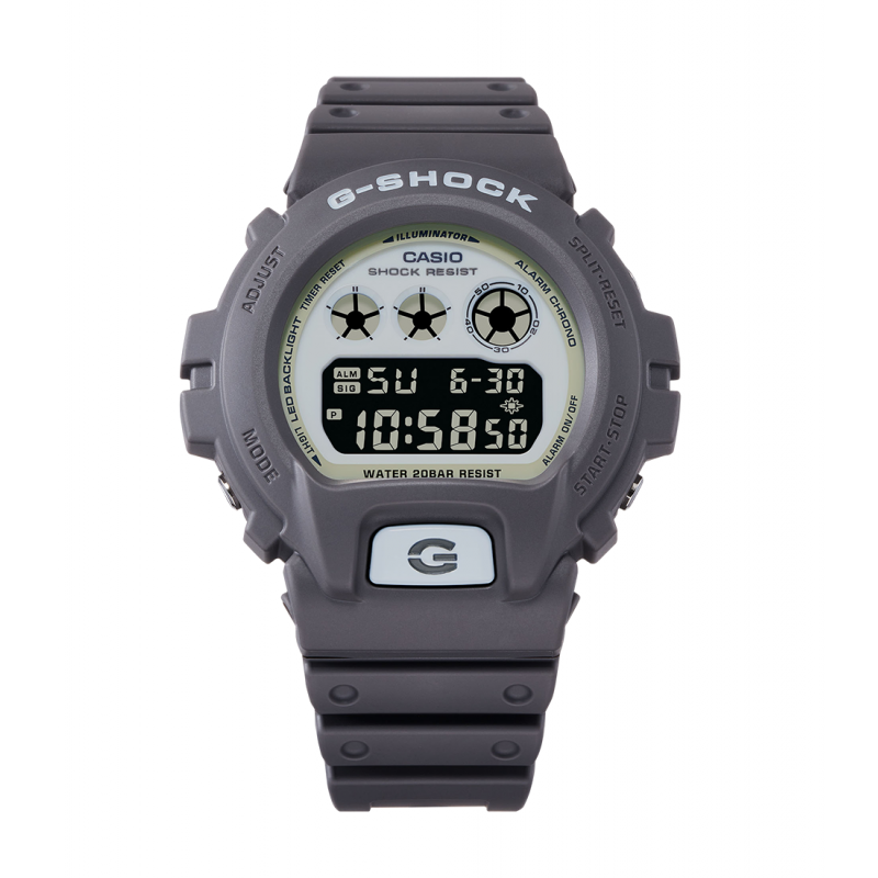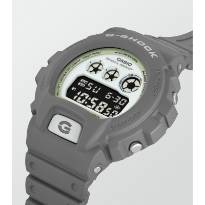 Casio G-shock DW-6900HD-8ER Hidden Glow color grigio possiede parti luminescenti sul quadrante che, in caso di scarsa luminosità, brillerà di un bellissimo verde intenso. I principali componenti sono prodotti in resina Bio-based che utilizza risorse organiche rinnovabili. La durata della batteria è di circa 5anni.